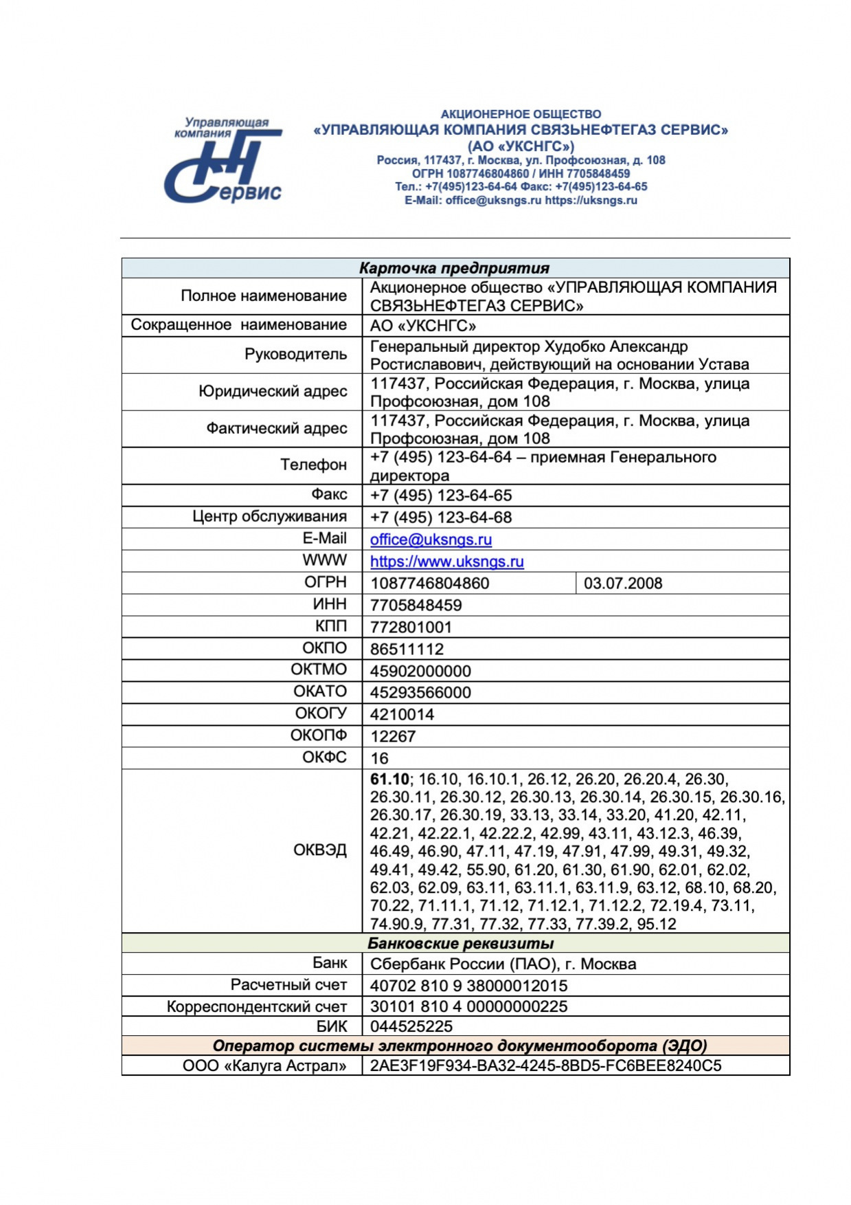 АКЦИОНЕРНОЕ ОБЩЕСТВО "УПРАВЛЯЮЩАЯ КОМПАНИЯ СВЯЗЬНЕФТЕГАЗ СЕРВИС" (АО "УКСНГС")